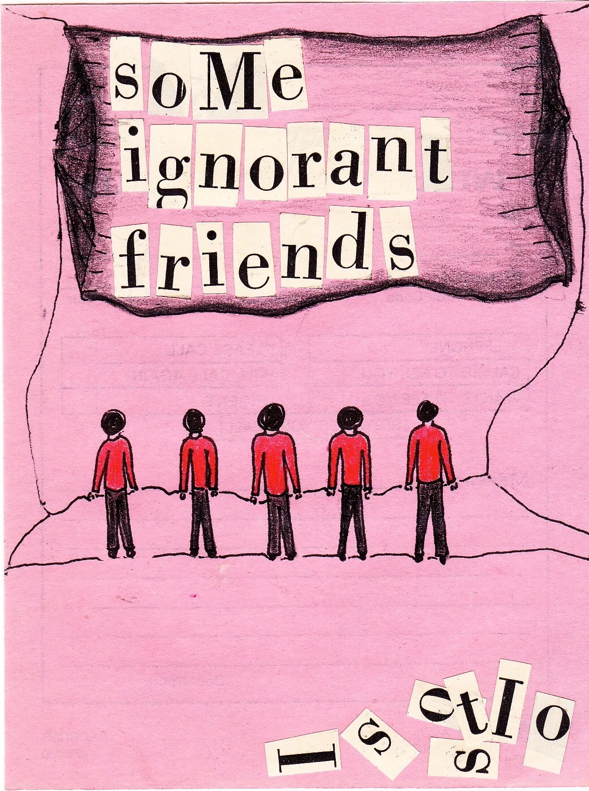 For most of these, I first find a piece of text in the trash (usually from an old music score), cut the letters apart, find all the anagrams, draw some people, decide on the anagram that matches the people, and then finish the drawing (ideally) to match the anagram. Letters piled at the bottom of a drawing are the ones left over. I've gotten a lot of my inspiration from the work of the (now-defunct) Royal Art Lodge, Edward Gorey, and Ray Johnson.